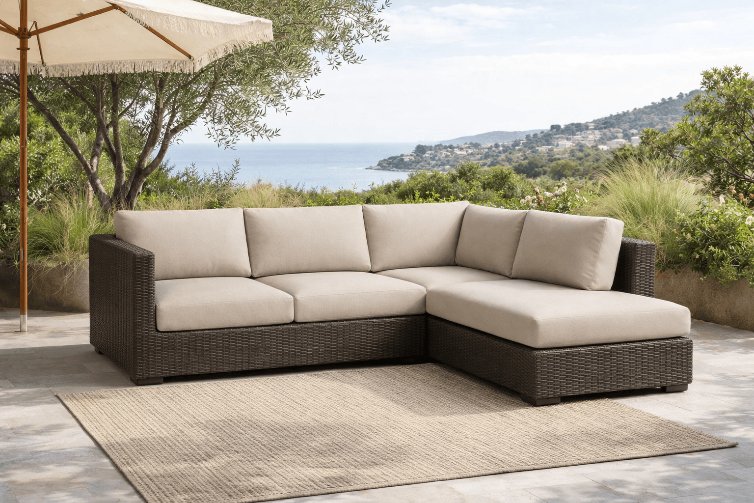 Conception modulable, adaptée aux terrasses et jardins, offrant un usage confortable au quotidien en extérieur.