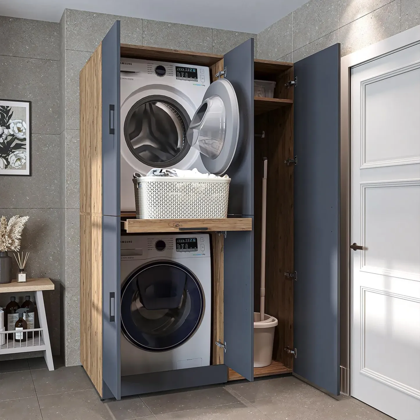 Dora - Armoire de machine à laver - Pour sèche-linge et machine à laver - En 4 couleurs - Avec portes et panneau coulissant - Blanc - Chêne blanc - Chêne anthracite - Chêne anthracite (chêne